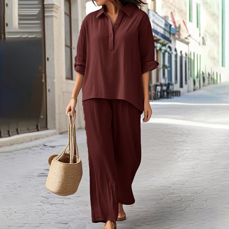 Effen Katoen Linnen Set – Overhemd en Broek met Wijde Pijpen