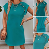 EFFEN DESIGN MET STIJLVOLLE AFWERKING: Deze jurk heeft een rustige, effen kleur zonder afleidende patronen, wat zorgt voor veelzijdigheid in combinatie. Een verfijnd detail is het rijtje van drie decoratieve knopen op de linkerschouder – een visueel accent binnen een minimalistische stijl.