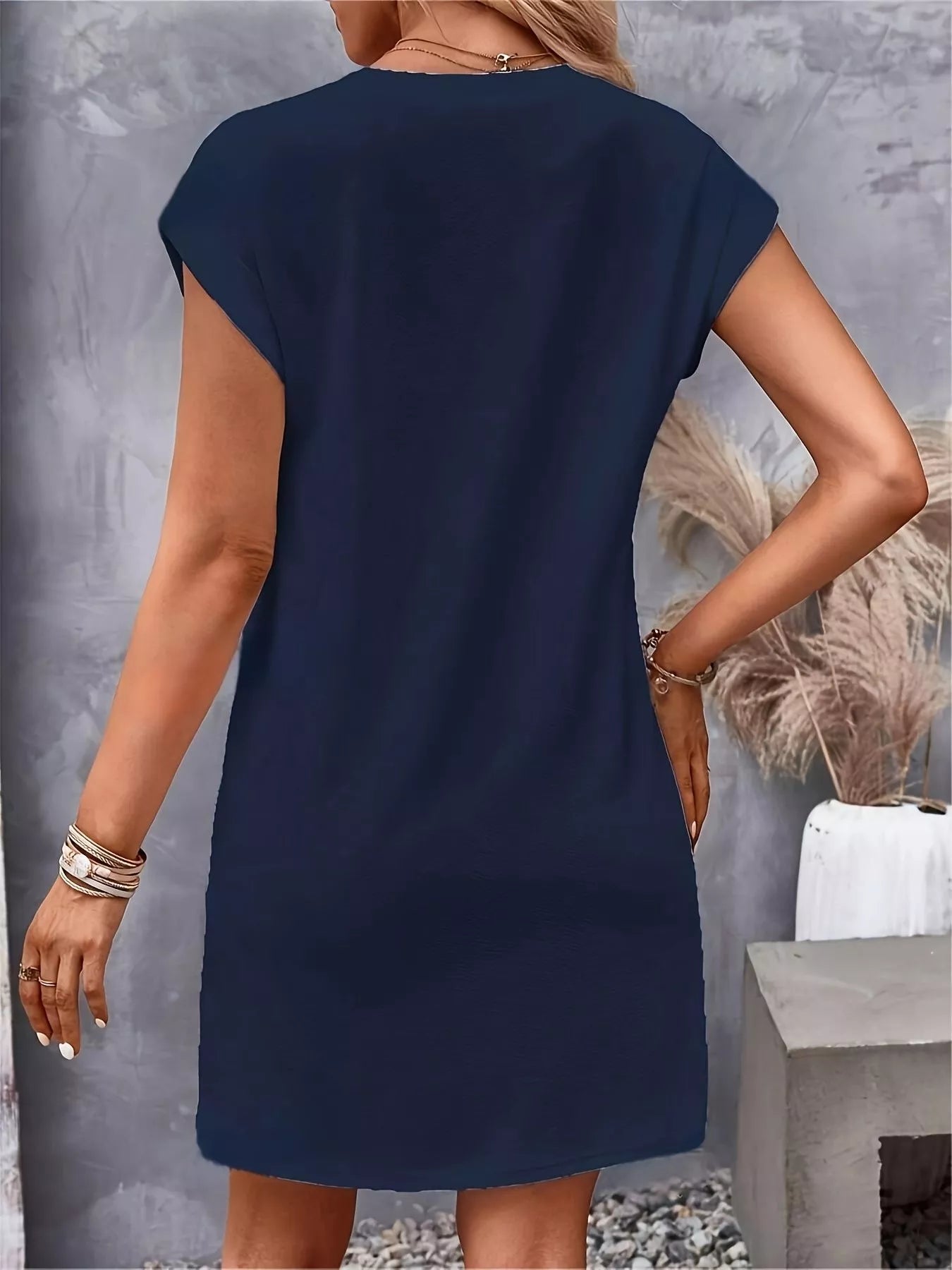 OPVALLENDE BOVEN-KNIELENGTE: De jurk valt net boven de knie, wat optisch zorgt voor langere benen en een evenwichtige lichaamsverhouding. Dit geeft een stijlvolle en zelfverzekerde uitstraling – ideaal voor zowel dagelijks gebruik als bijzondere gelegenheden.