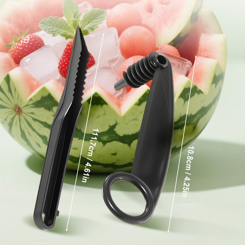TWEEDELS GEREEDSCHAP VOOR CREATIEF VERSIEREN – Het spiraalmes draait citrusschillen om tot cocktailgarnituren of courgette tot fijne linten, terwijl het V-vorm snijmes stervormige patronen snijdt in aardbeien of ingewikkeld vlechtwerk maakt op ananas. Combineer beide voor bloemrijke fruitschotels of moderne groentesculpturen – geen ervaring nodig.
