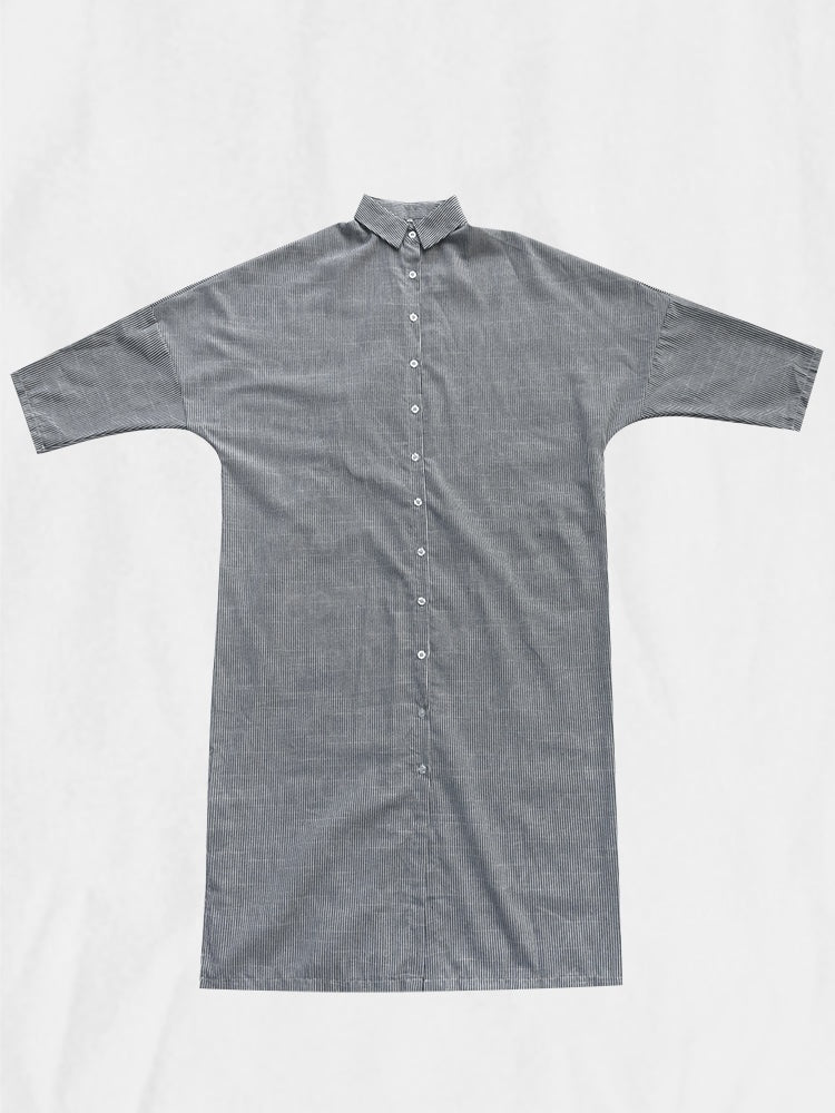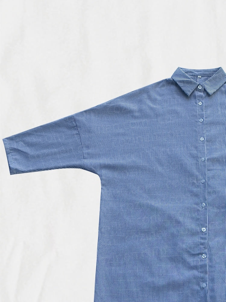Beschrijf | 【Relaxed】gestreept vest los grote maat onregelmatige jurk |