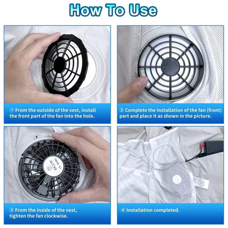 Pakketinhoud: 1 * Zomerkoelend airconditioningvest of 2 * 5V borstelloze ventilatoren of 1 * Zomerkoelend airconditioningvest + 2 * 5V borstelloze ventilatoren + 1 * 10.000 mAh-batterij