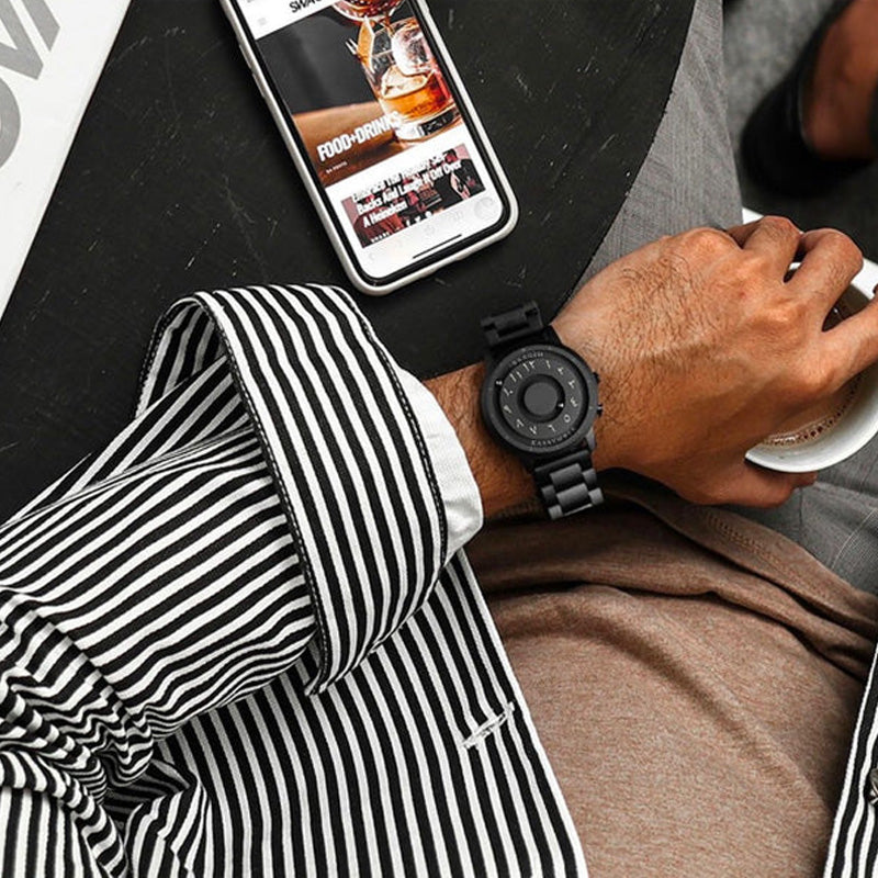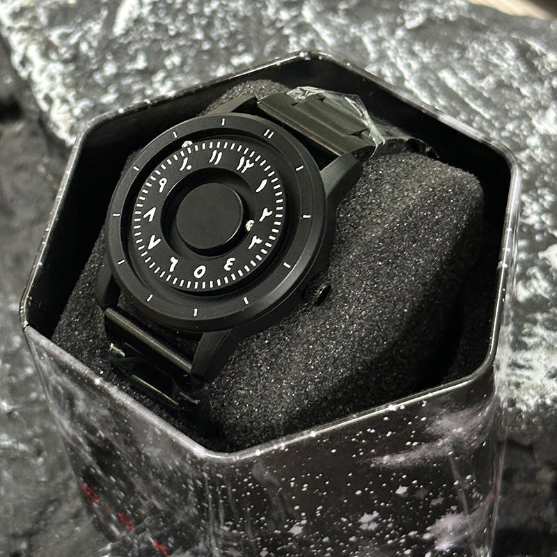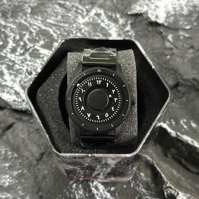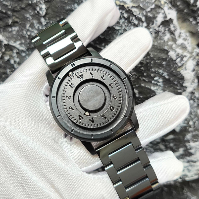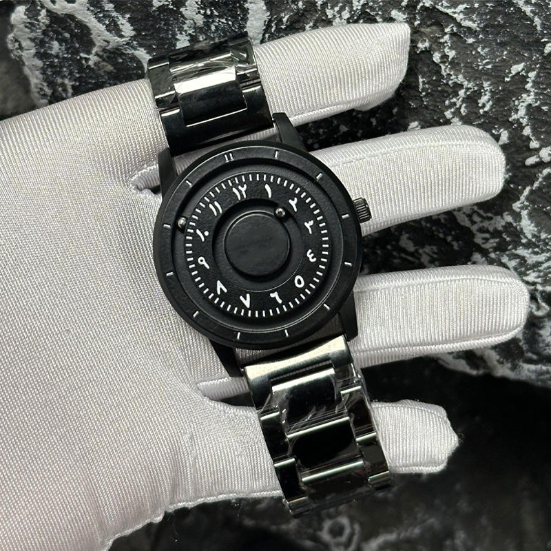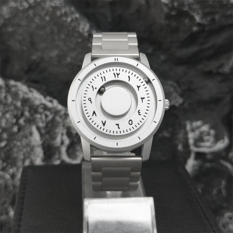 FUTURISTISCHES MAGNETZIFFERBLATT: Auf dem Zifferblatt befinden sich zwei Stahlkugeln - eine für den Stundenzeiger und eine für den Minutenzeiger. Dieses innovative Design bricht mit der Tradition und sorgt für eine präzise Zeitmessung, während es Ihrem Look einen eleganten, modernen Touch verleiht.