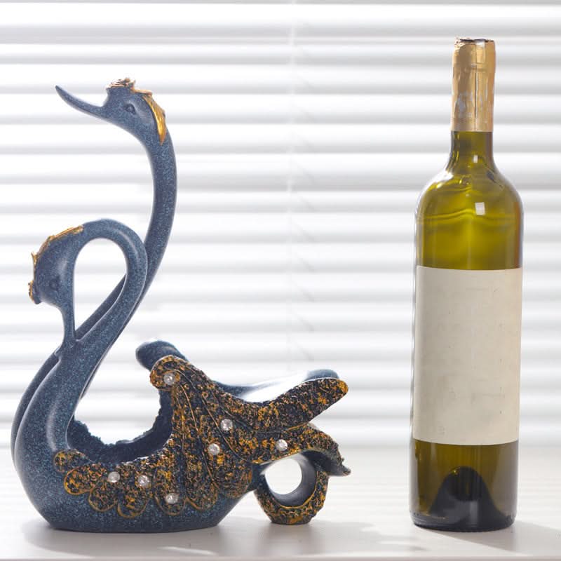 CREATIEF ONTWERP IN DE VORM VAN EEN ZWAAN: Deze wijnhouder, vakkundig vormgegeven in een elegante zwanenvorm, combineert artistieke schoonheid met functioneel design. De sierlijke rondingen en het gedetailleerde vakmanschap maken hem tot een opvallend pronkstuk dat elke kamer een boost geeft.