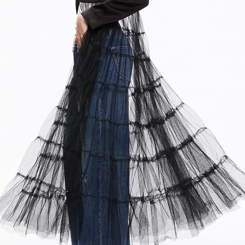 VEELZIJDIGE STYLING – De scherpe revers en gestructureerde schouders zorgen voor een professionele uitstraling, terwijl de zwierige tule een speelse vrouwelijkheid toevoegt – perfect voor zowel conservatieve als avant-garde garderobes.