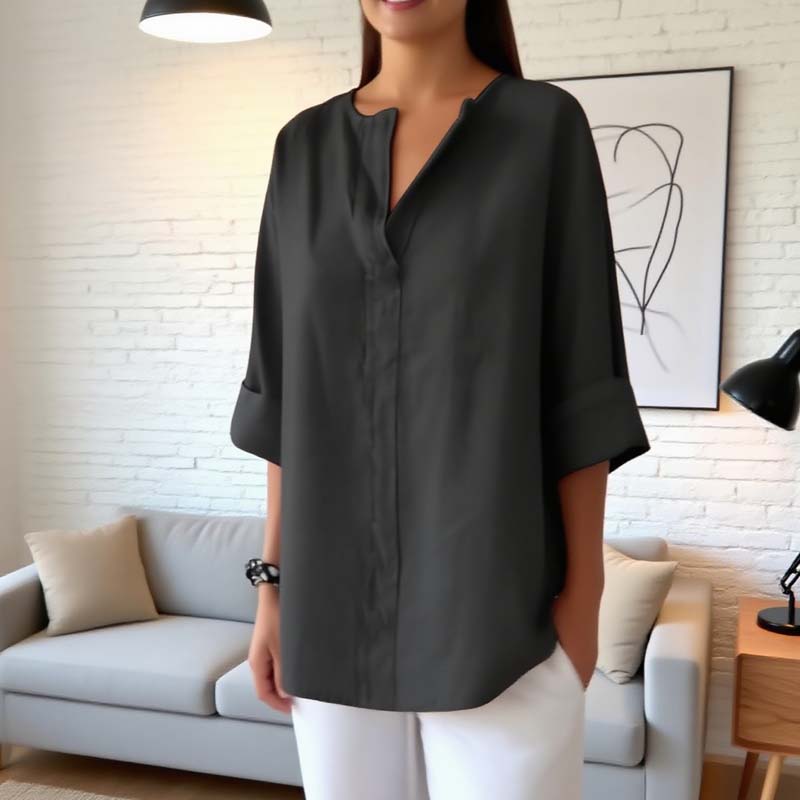 MOEITELOZE VEELZIJDIGHEID – Deze top is de hoeksteen van een capsulegarderobe en kan naadloos overgaan van professionele omgevingen naar casual sociale evenementen. Het klassieke ontwerp en de ingetogen elegantie maken het de perfecte basis voor het uitdragen van een persoonlijke stijl door middel van accessoires en combinaties met onderstukken.