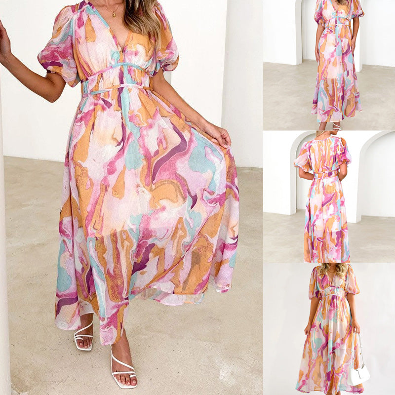 Verpakkingsinhoud: 1 × Boheemse Lange Jurk met Pofmouwen en V-Hals voor Dames