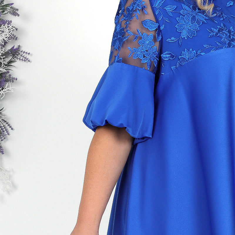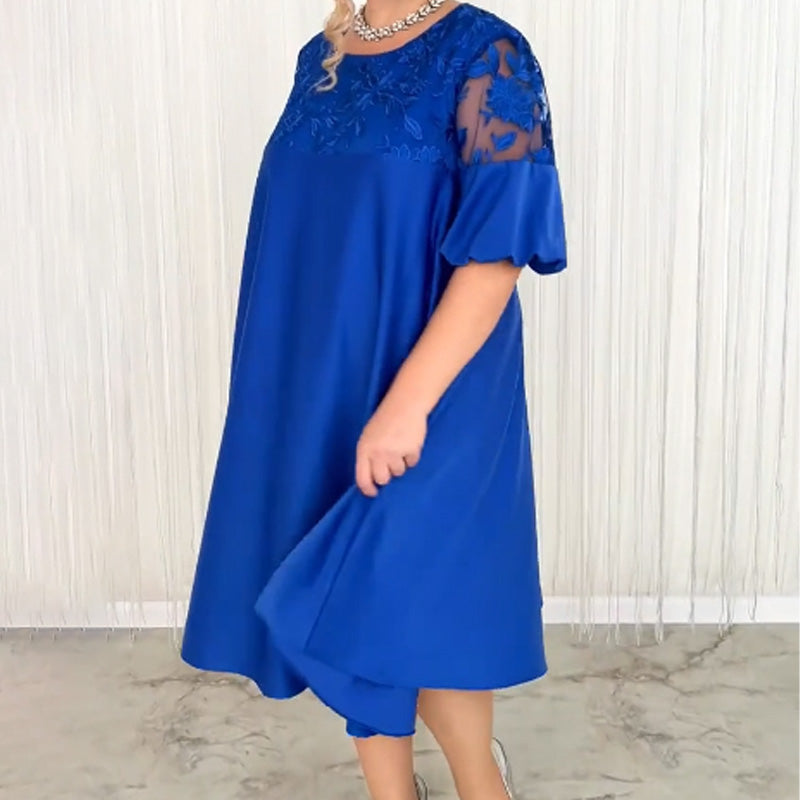 KANTDETAIL OP DE SCHOUDERS – Fijne kanten accenten op de schouders zorgen voor extra ventilatie en geven een subtiele, vrouwelijke uitstraling. Deze lichte details houden de jurk luchtig en elegant – ideaal voor warme dagen waarop u stijlvol voor de dag wilt komen zonder extra gewicht.