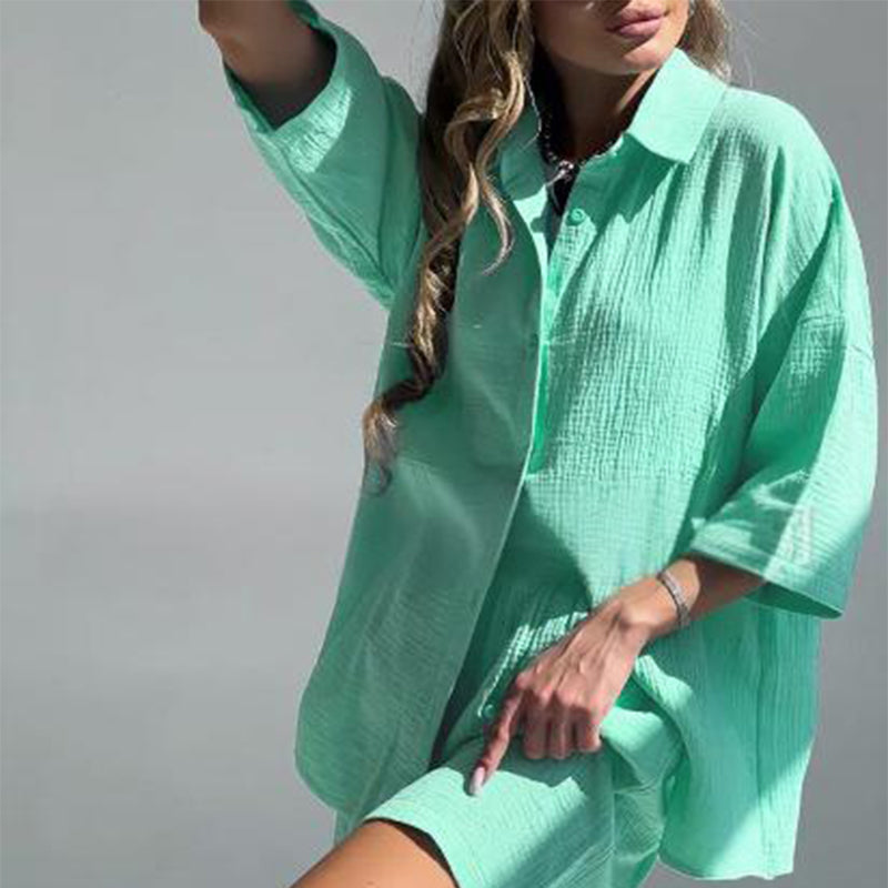 Dames 2-Delige Set: Casual Shirt en Elastische Tailleband Shorts
