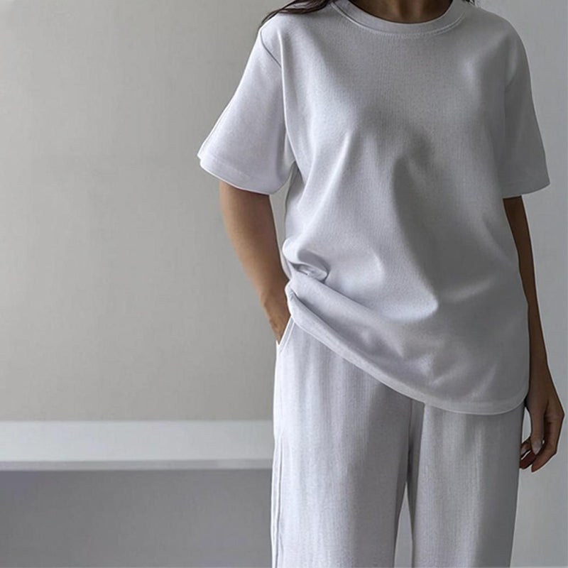 Dames Casual Effen 2-Delige Set – Top & Broek met Wijde Pijpen
