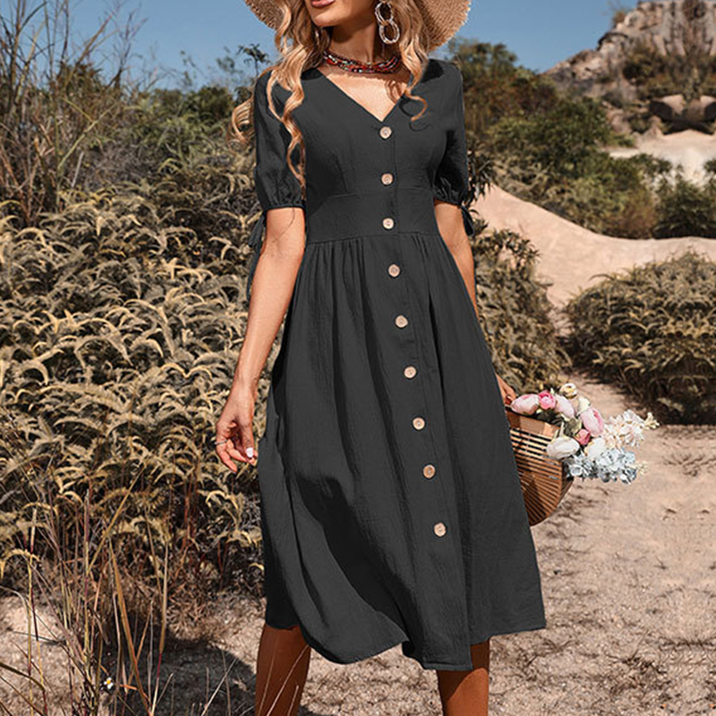 Verpakking bevat: 1 * Dames casual jurk met V-hals en knoopsluiting