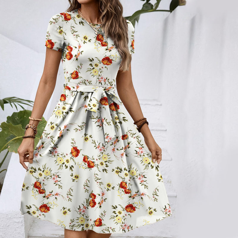Inhoud verpakking: 1 × Elegante Damesjurk met Ronde Hals en Print