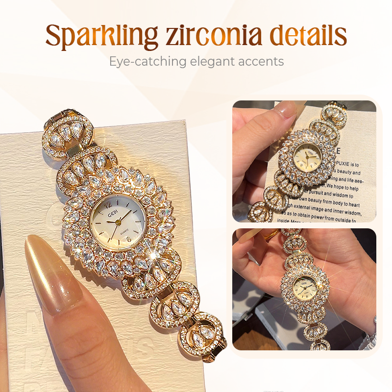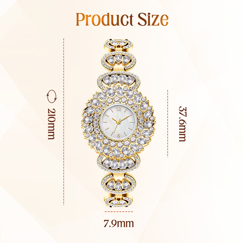 SPARKELENDE ZIRKONIA-DETAILS: De verfijnde bezel en band zijn versierd met zirkoniasteentjes die het licht prachtig vangen en weerkaatsen. Deze schitterende accenten tillen je dagelijkse stijl naar een hoger niveau, waardoor het horloge zowel geschikt is voor professionele gelegenheden als voor feestelijke momenten, en net dat vleugje glamour toevoegt aan elke outfit.