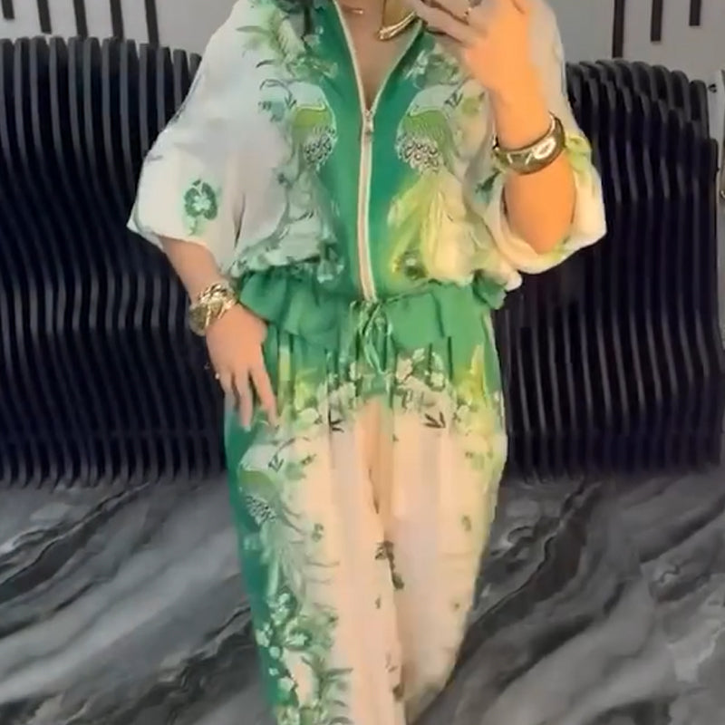 CHIQUE BLOEMENPATROON: Deze twee-delige set heeft delicate bloemenprints, die een elegante flair toevoegen en moeiteloos je verfijnde stijl verbeteren voor zowel casual als formele gelegenheden.