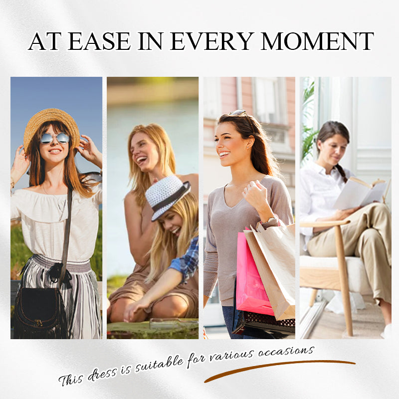VEELZIJDIGE DAGELIJKSE ELEGANTIE: Ga moeiteloos van professionele omgevingen naar sociale bijeenkomsten. De jurk past perfect bij blazers voor kantoor, kan solo gedragen worden voor tuinfeesten, of wordt gecombineerd met een spijkerjack voor een weekenduitje.