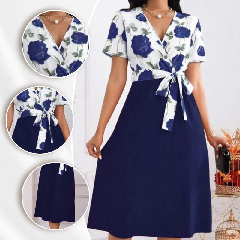 Pakket bevat: 1 * Dames wikkeljurk met bloemenpatroon, V-hals en riem