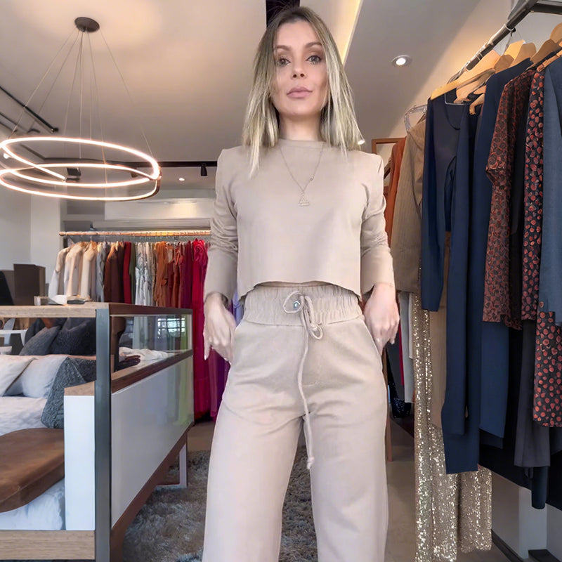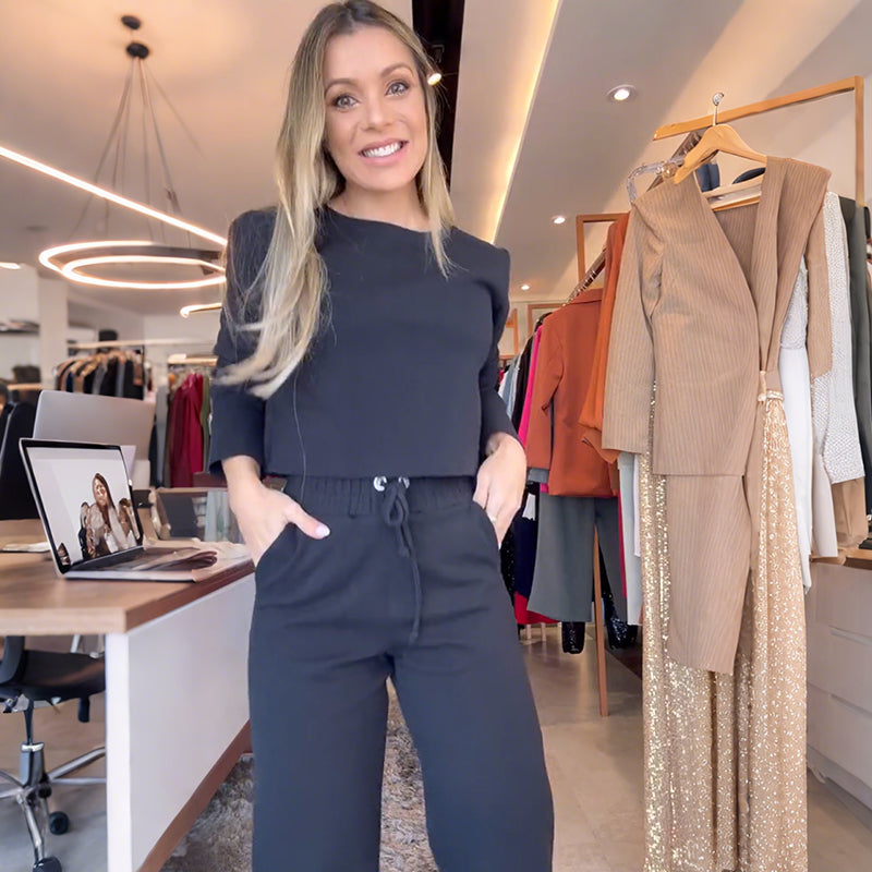 Dames Tweedelige Set: Lange Mouw Top & Hoge Taille Broek