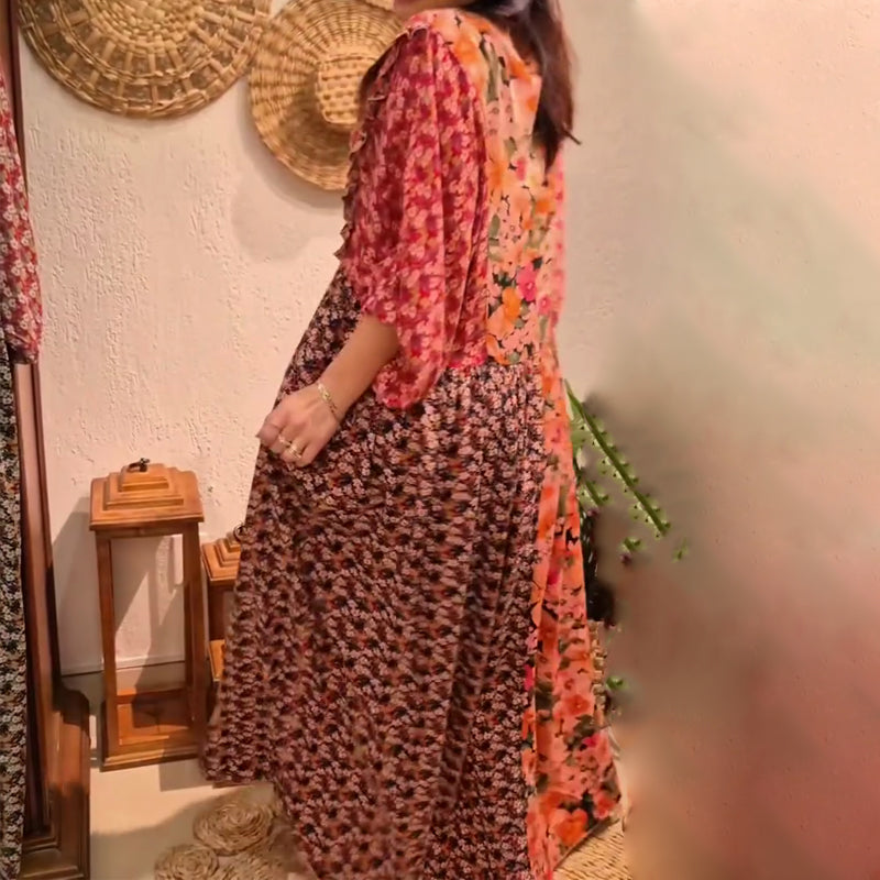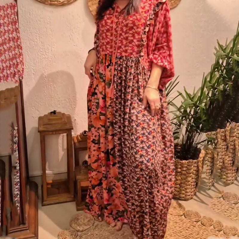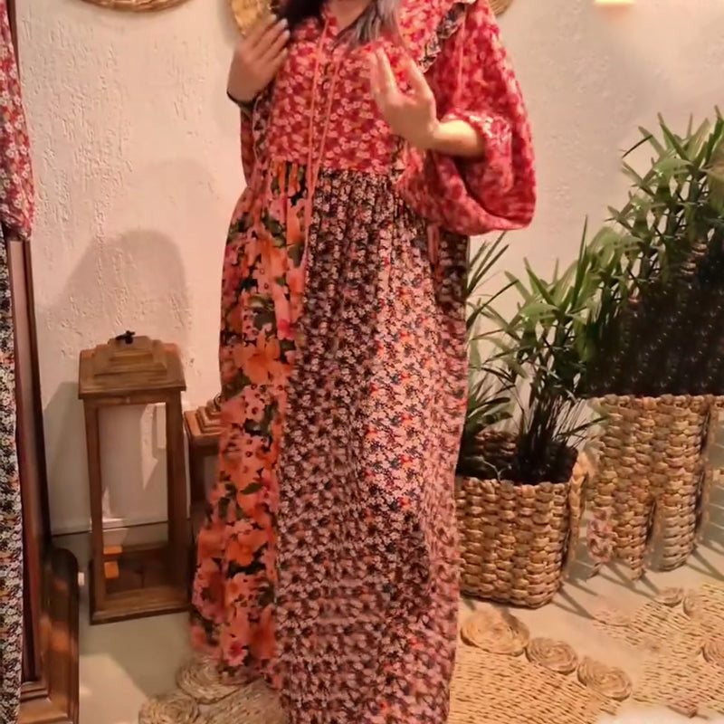 Package Include: 1* Women's Printed Pleated Maxi Dress