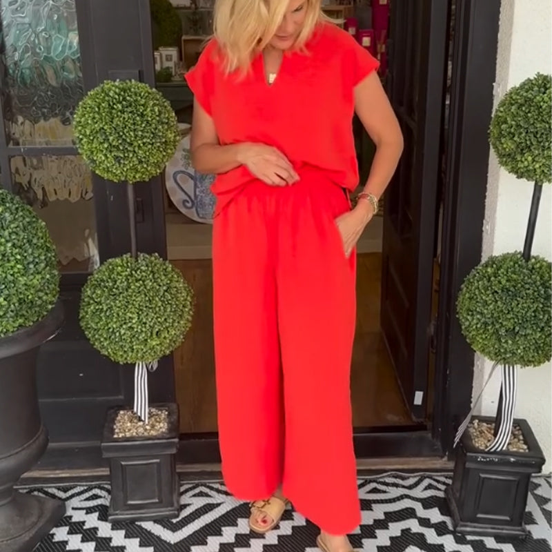 Verpakking bevat: 1* Effen casual tweedelig setje voor dames