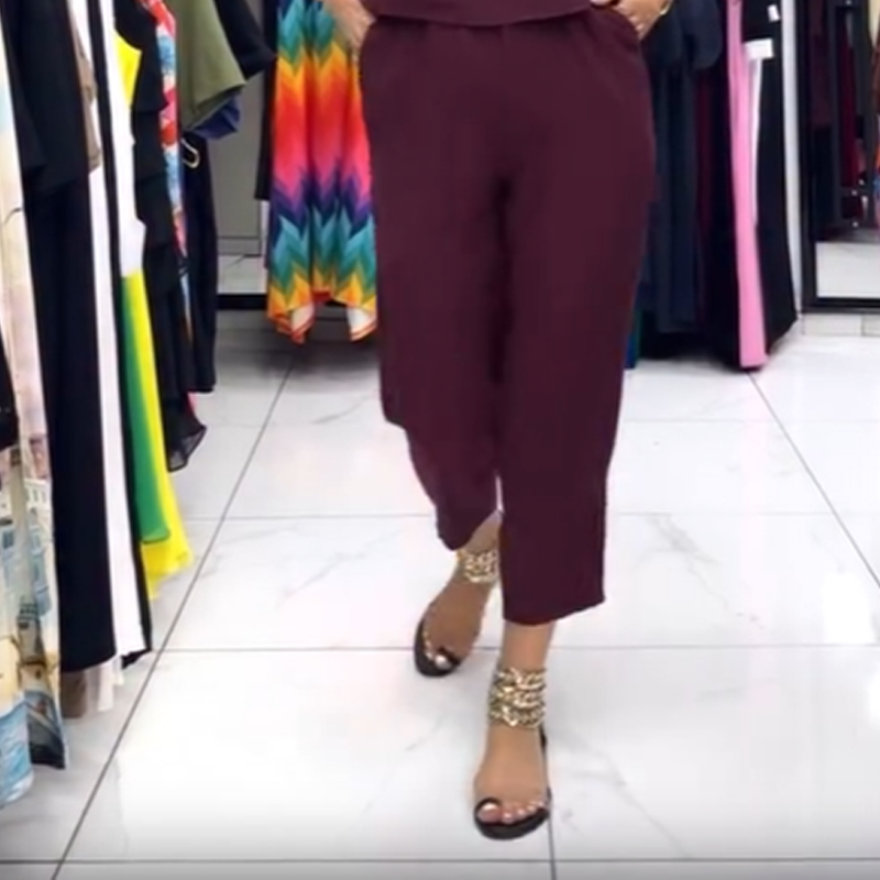 COMFORTABELE BROEK - Ontworpen voor moeiteloze beweging, met een flatterend model dat perfect past bij de top. Combineert stijl met comfort, ideaal voor zowel dagelijkse uitstapjes als speciale gelegenheden.