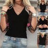 BLOEMENKANT VERSIERING – De lange mouwen zijn gemaakt van kant met fijne bloemenborduursels. De roze en gele bloemen op het zwarte kant zorgen voor een charmante en romantische uitstraling, waardoor de top opvalt.