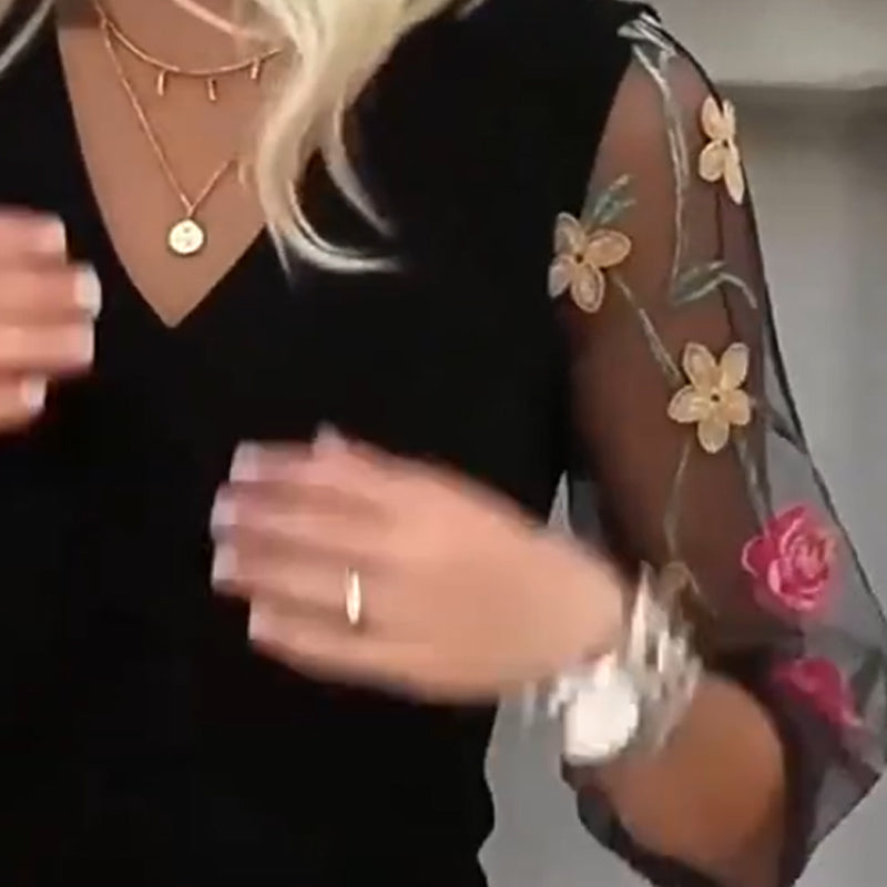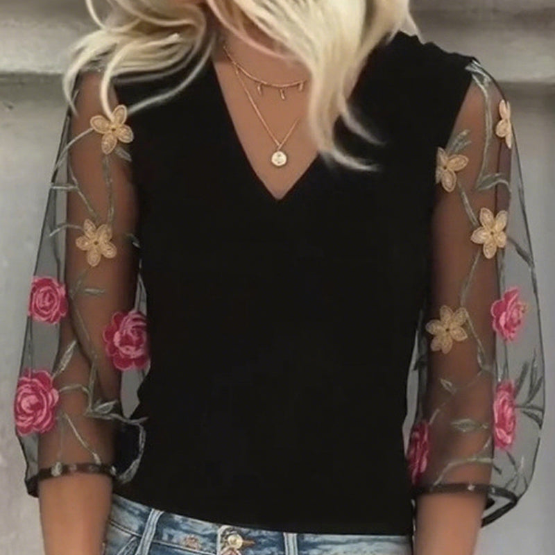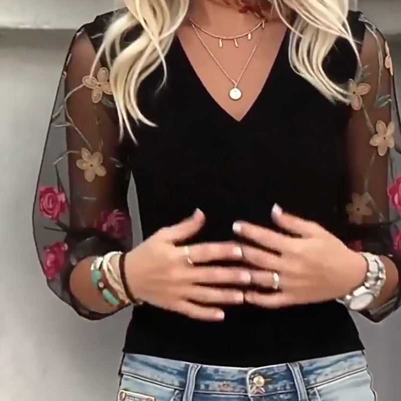 1 * Dames V-hals bloemenkant top met lange mouwen