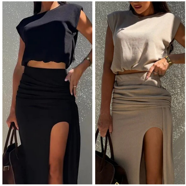 💥💥💥Elegante top en rokset met hoge split voor dames