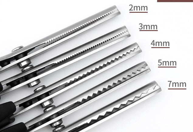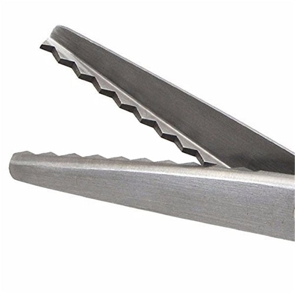 - VEELZIJDIGE KARTELSCHAAR - De scherpe messen zijn gekarteld en vormen een zigzagpatroon terwijl u knipt. Het gekartelde patroon beperkt de lengte van de gerafelde draad van niet-gehaakte stofranden en minimaliseert zo de schade.